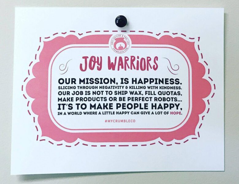 With its current branding, the business has taken on the slogan, “Crumble Co., the Anti-Suicide and Pro-Joy Company,” Love said. His own personal history already had shown Crumble Co. could become a vehicle for overcoming depression, he said.