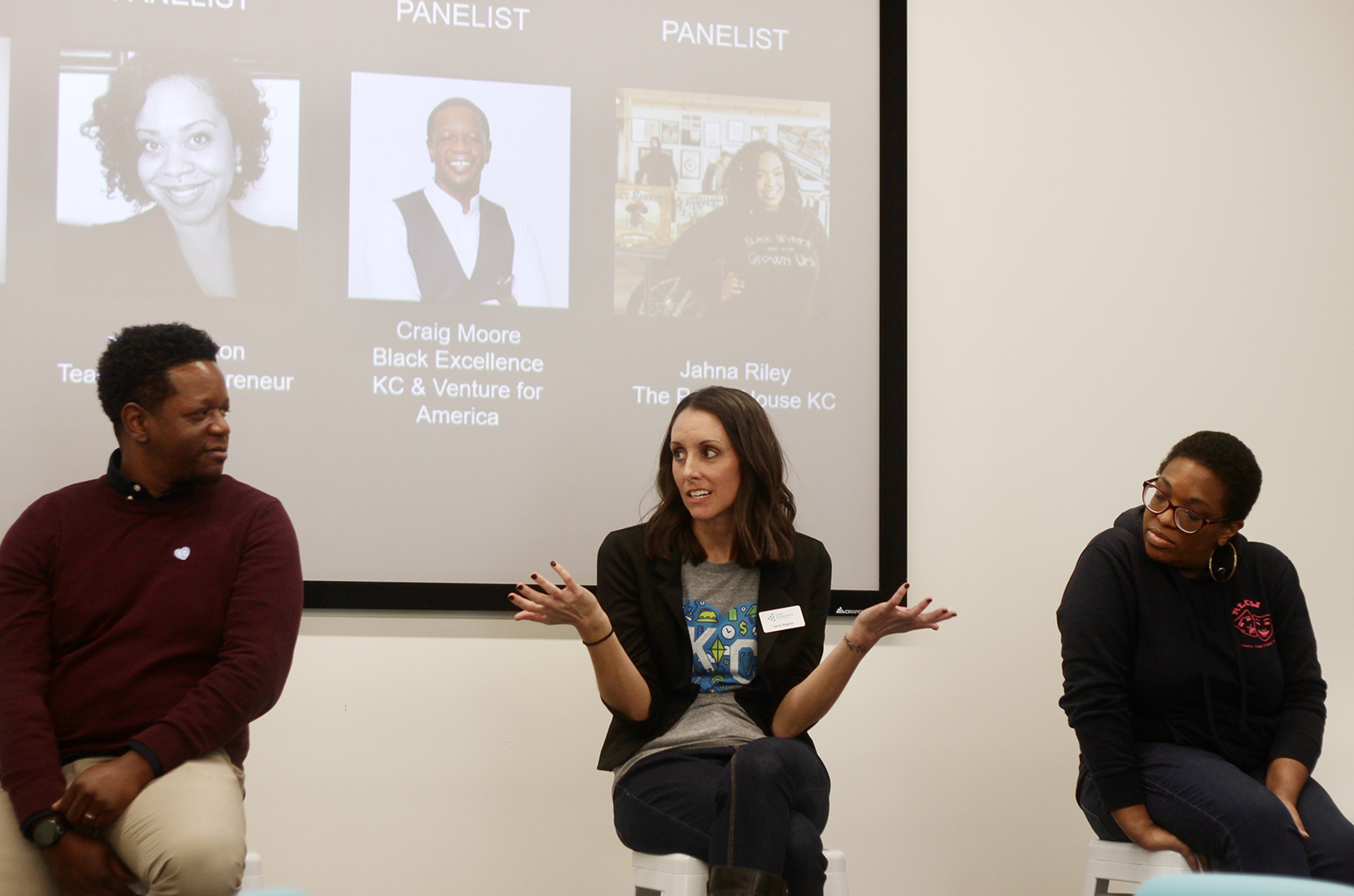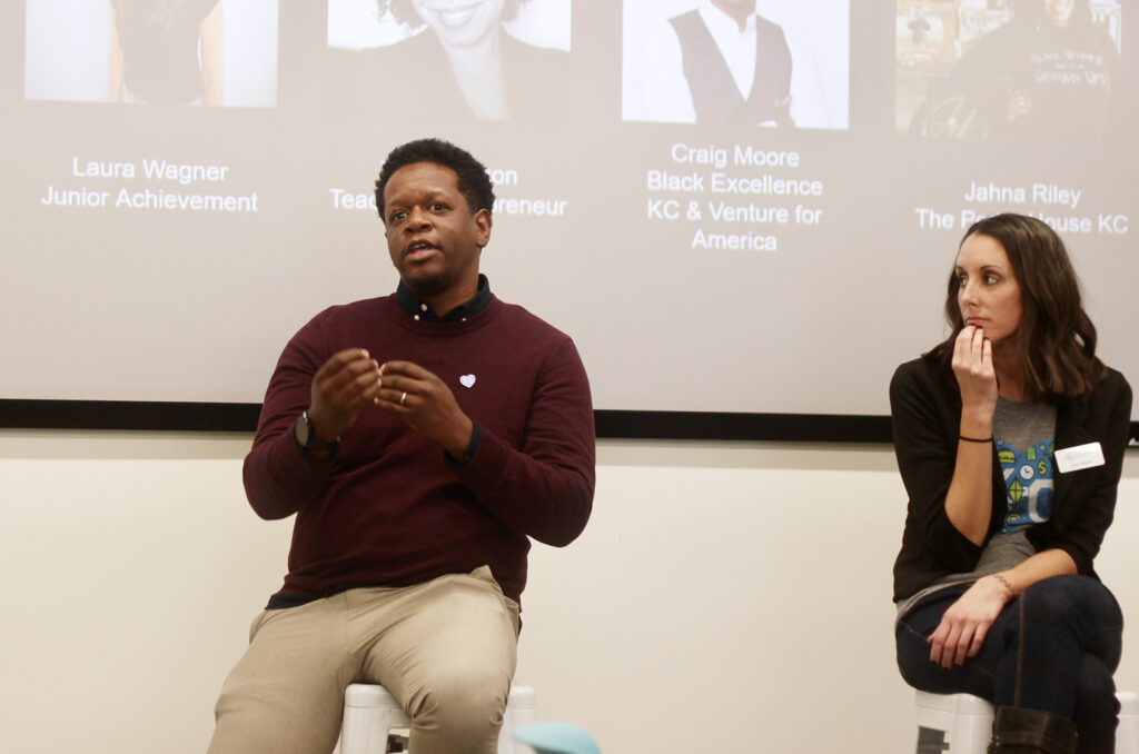 Dixon — a social innovation teacher and the founder of NextPitch, a crowdsourcing platform for innovative youth — was joined on the panel by Craig Moore, executive director of Black Excellence KC and director of KC’s Venture for America program; Jahna Riley, director of education for the Porter House KC; and Laura Wagner, education manager at Junior Achievement of Greater Kansas City.