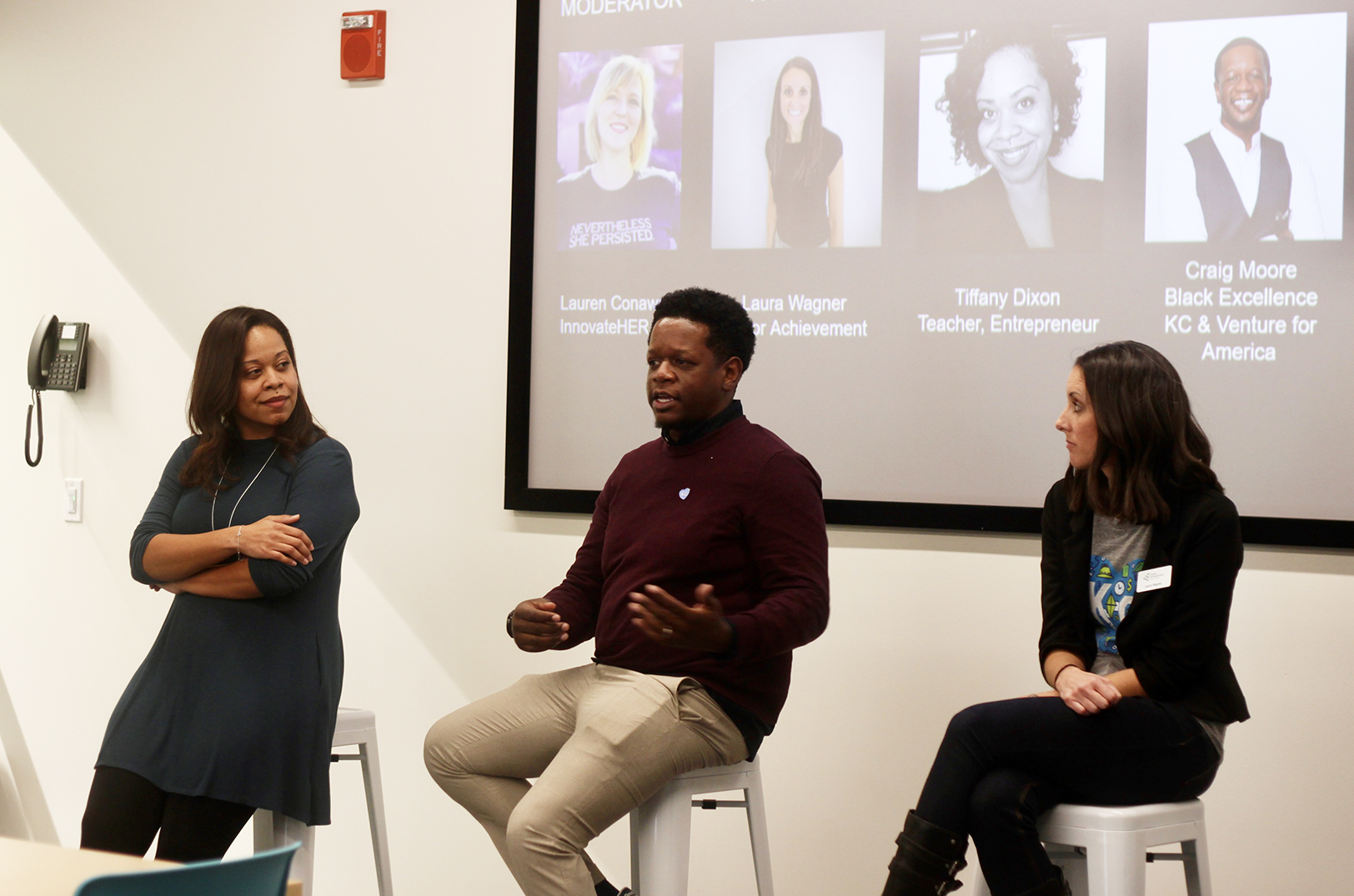 Dixon — a social innovation teacher and the founder of NextPitch, a crowdsourcing platform for innovative youth — was joined on the panel by Craig Moore, executive director of Black Excellence KC and director of KC’s Venture for America program; Jahna Riley, director of education for the Porter House KC; and Laura Wagner, education manager at Junior Achievement of Greater Kansas City.
